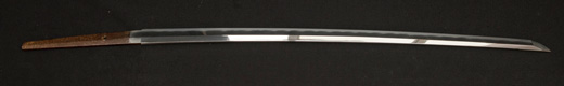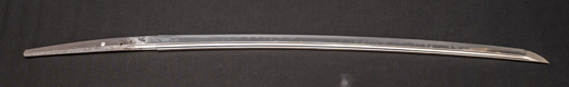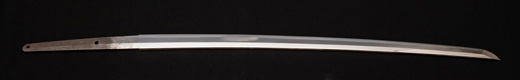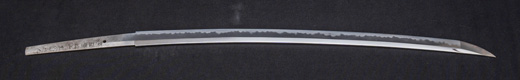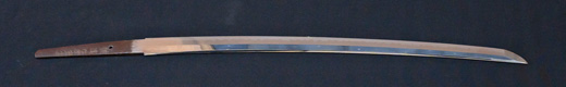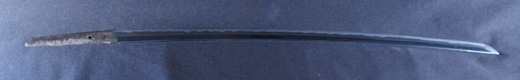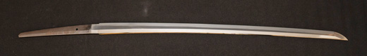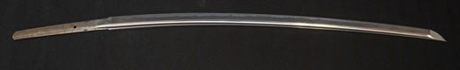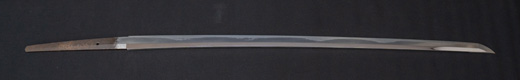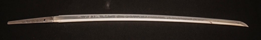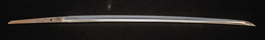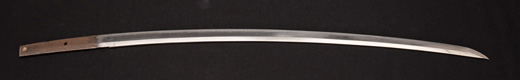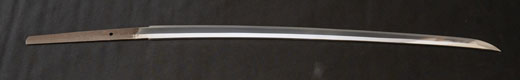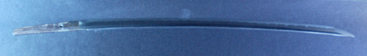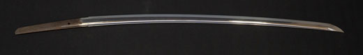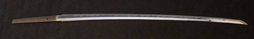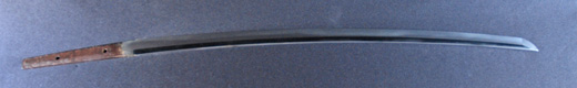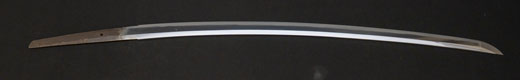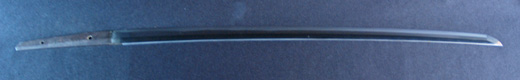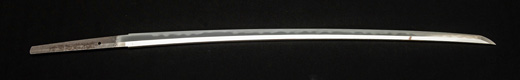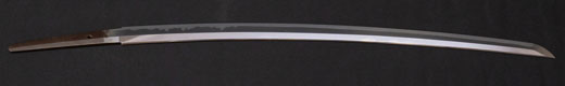 | 刀長 64.7cm(2尺1寸4分) 反り 1.7cm(5分3厘) 元幅 2.92 cm 先幅2.19cm 元重 6.6 mm 先重 5.4 mm 刀身重量 裸身 700g 鞘を払って ‐g 茎 生 目釘穴 1 刃文 直刃 |
