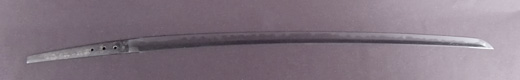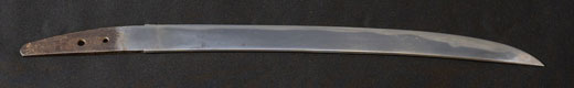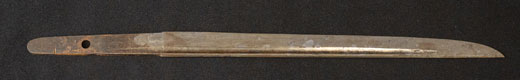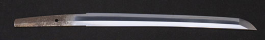 | 刀長 25.2cm(8寸3分) 元幅 2.11cm 先幅 1.73cm 元重 5.3mm 先重 4.2mm 茎 生 目釘穴 2 刃文 直刃 |