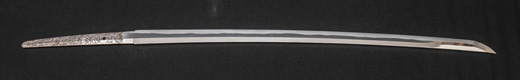 | 刀長 73.9cm(2尺4寸4分) 反り 1.0cm(3分3厘) 元幅 3.08 cm 先幅 2.33 cm 元重 6.4mm 先重 5.1 mm 刀身重量 裸身 750gg 鞘を払って ‐g 茎 生 目釘穴 2 刃文 乱刃 |