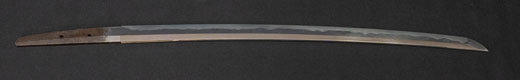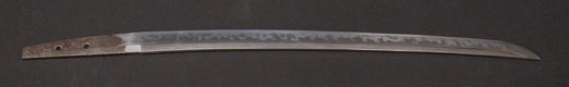 | 刀長 57.2cm(1尺8寸9分) 反り 1.5cm(5分) 元幅 2.83cm 先幅 2.18cm 元重 6.1mm 先重 4.3mm 茎 生 目釘穴 1刃文互ノ目乱 |