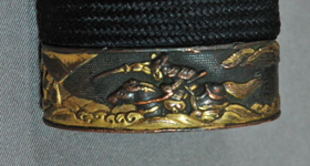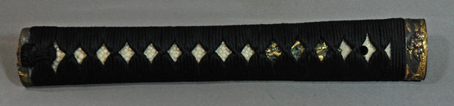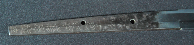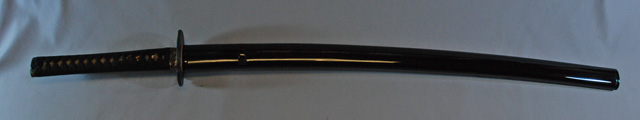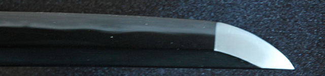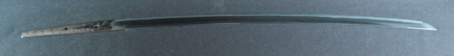 | 刀長 68.1cm(2尺2寸4分) 反り 1.6cm(5分3厘) 元幅 2.98cm 先幅 2.31cm 元重 6.5mm 先重 5.4mm 刀身重量 裸身 730g 鞘を払って 1,180g 茎 摺上 目釘穴 2 刃文 小互の目 |