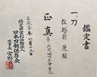 兼植は美濃関より越前に移住した刀工である。地鉄 小板目肌良く錬れ肌立ち沸付き足入る。