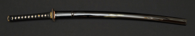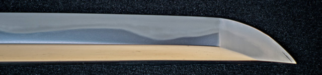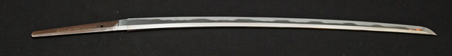 刀長 69.2cm(2尺2寸8分) 反り 1.4cm(4分6厘) 元幅 3.04cm 先幅 2.16cm 元重 6.4mm 先重 3.6mm  刀身重量 裸身 780g  鞘を払って 1,050g  生  目釘穴 1  刃文 箱乱 価格