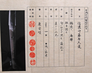 Katana Shinanonokami Fujiwara DAIDOU 国・時代