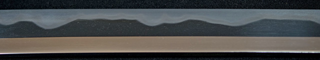 刃紋互ノ目三本杉がかる 地金小板肌包出来刃冴える。