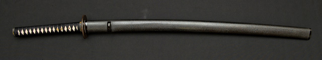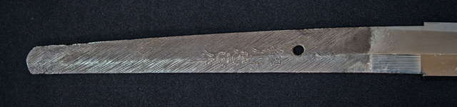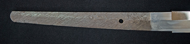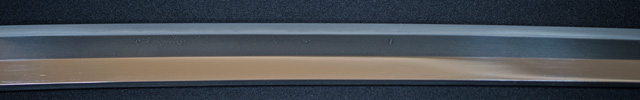 刀長 72.1cm(2尺3寸8分) 反り 1.1cm(3分6厘) 元幅 3.39cm 先幅 2.69cm 元重 7.5mm 先重 5.2mm 刀身重量 裸身 920g  鞘を払って 1,300g  茎 生  目釘穴 1  刃文 直刃 価格