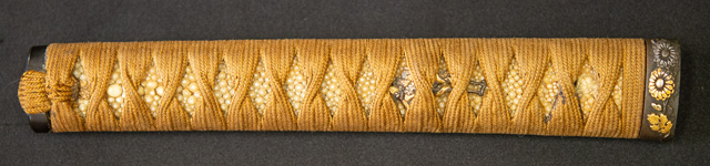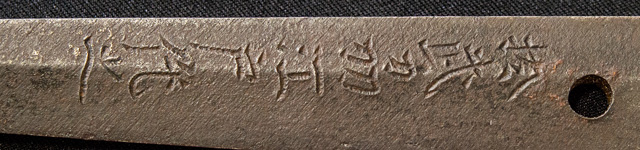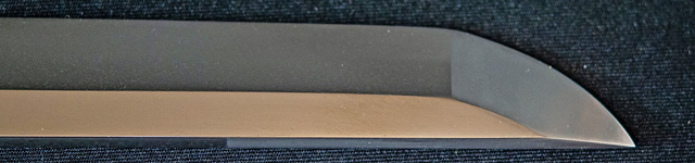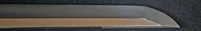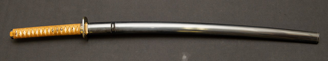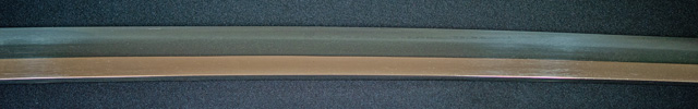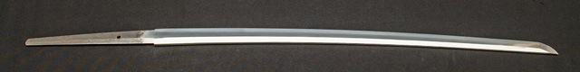 | 刀長 70.6cm(2尺3寸3分) 反り 1.0cm(3分3厘) 元幅 3.20cm 先幅 2.41cm 元重 6.6mm 先重 5.3mm 刀身重量裸身760g 鞘を払って 1,150g 茎 生 目釘穴 1 刃文 互ノ目乱 |