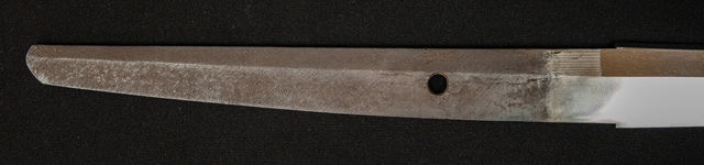 刀長 69.8cm(2尺3寸強) 反り 2.0cm(6分6厘) 元幅 2.97cm 先幅 2.21cm 元重 7.2mm 先重 5.3mm 刀身重量裸身740g  生 目釘穴 1  刃文 大乱 価格