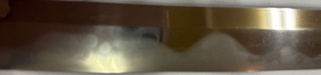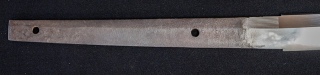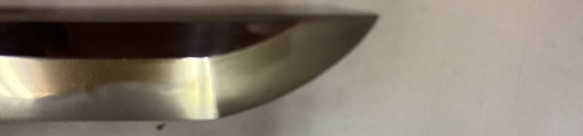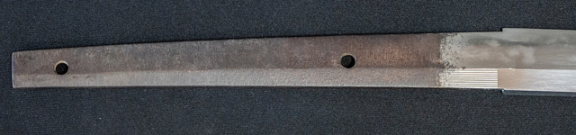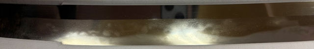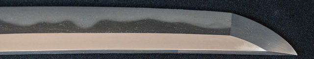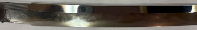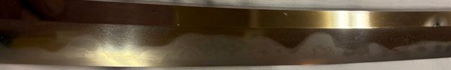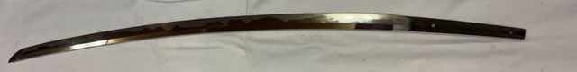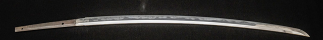 刀長 64.5cm(2尺1寸3分) 反り 2.0cm(6分5厘) 元幅 2.73cm 先幅 2.18cm 元重 5.2mm 先重 4.3mm 刀身重量裸身600g  摺上 目釘穴 2  刃文  互ノ目丁子 価格