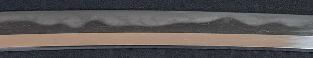 広正初代は南北朝の頃の人と云うが現存するものはない。本作は三代応永の広正であろう。刃紋はばき元は皆焼がかり足、葉盛んに働き刃先まで沸足入る。地金小板目肌良く錬れ出来が良い。
