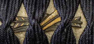 | 長寸の勤王刀である。正宜は名鑑もれながら武用拵えが付いている。刃文互ノ目乱物打辺りに砂流し金線さかんに入る。地金小杢肌地沸付き美しい。 |