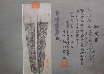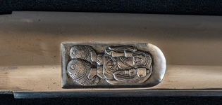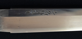 上手な大黒様の彫が有り虎徹と同じデザインである。のたれ刃、小沸出来、所々砂流し金線入る。地金小板目