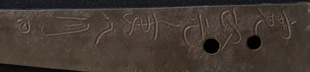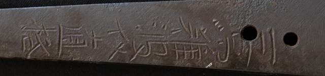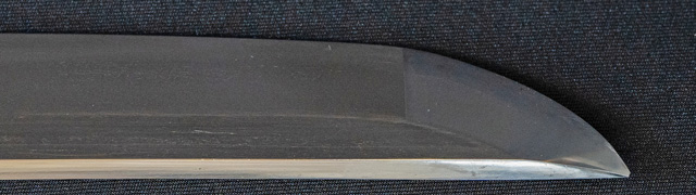 刀長 47.9cm(1尺5寸8分) 反り0.6(2分) 元幅 3.31cm 先幅 2.32cm 元重 8.0mm先重 6.1mm重量 裸身720g 目釘穴 2 刃文のたれ刃 価格