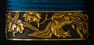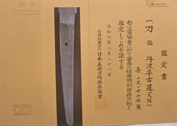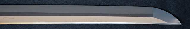 | 大阪丹波守吉道の二代の作である。三品宇右衛門と云い大阪住。刃紋広直刃、刃冴えて一面に小足入る。地金小板目肌良く約み美しい。 |