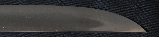 刀長 33.1cm(1尺1寸) 反り 0.4(1分3厘) 元幅 2.76cm 先幅 2.48cm 元重 6.1mm先重 4.4mm重量 裸身270g鞘を払って470g 目釘穴 2 刃文のたれ 価格