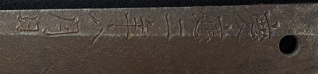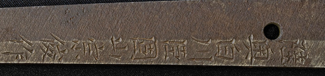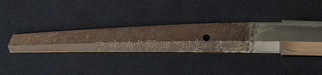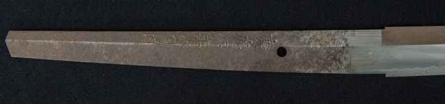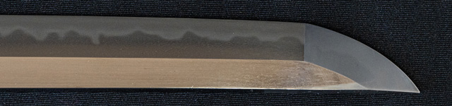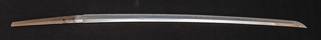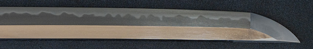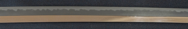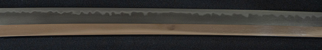 | 刀長 71.4cm(2尺3寸6分) 反り 1.1cm(3分6厘) 元幅 3.01cm 先幅 2.34cm 元重 8.1mm 先重 6.0mm 刀身重量裸身940g 茎 生 目釘穴 1 刃文 互ノ目丁子 |