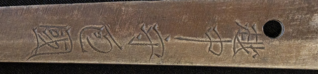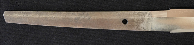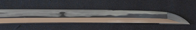 刀長 71.2cm(2尺3寸5分) 反り 1.1cm(3分6厘) 元幅 3.04cm 先幅 2.15cm 元重 6.8mm 先重 4.9mm 刀身重量裸身690g  生 目釘穴 1  刃文 すだれ刃 価格