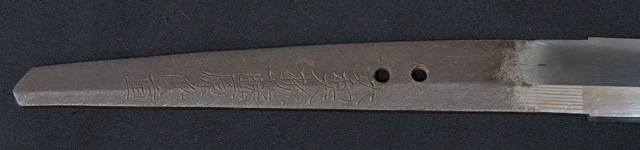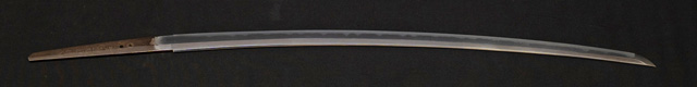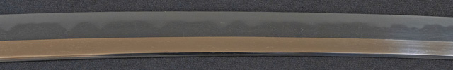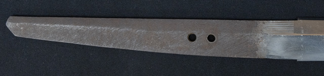 刀長 68.9cm(2尺2寸7分) 反り 2.0cm(6分5厘) 元幅 3.02cm 先幅 2.18cm 元重 6.8mm 先重 4.7mm 刀身重量裸身660g 鞘を払って990g 生 目釘穴 2  刃文 乱刃 価格