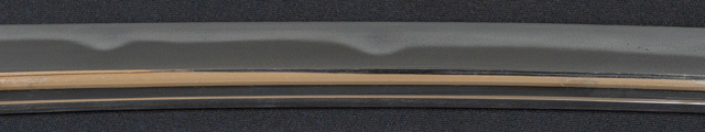 刀長53.8cm(1尺7寸7分5厘) 反り 1.2(4分) 元幅 2.80cm 先幅 2.29cm 元重7.3mm 先重5.4mm 刀身重量裸身410g  目釘穴1 刃文乱刃 価格