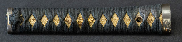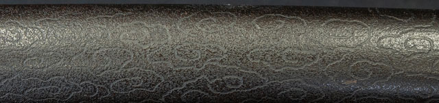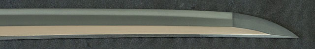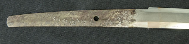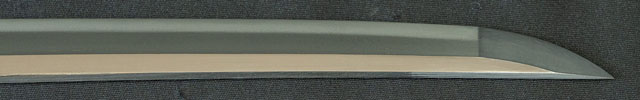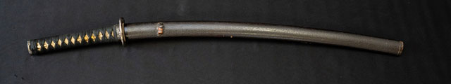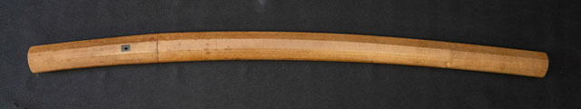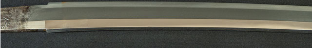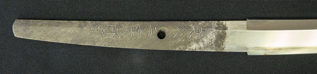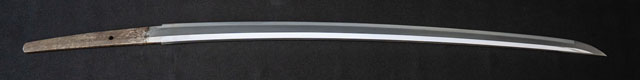 | 刀長 52.6cm(1尺7寸3分) 反り 1.1cm(3分6厘) 元幅 2.53cm 先幅 1.94cm 元重 6.7mm 先重 5.1mm 刀身重量 裸身 440g 鞘を払って 700g 茎 生 目釘穴 刃文 直刃 |