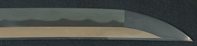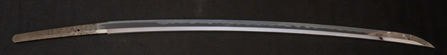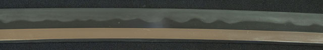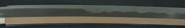刀長 70.5cm(2尺3寸2分強) 反り 2.0cm(6分6厘) 元幅 3.11cm 先幅 2.54cm 元重 6.8mm 先重 5.3mm  刀身重量 裸身770g  鞘を払って 1,080g  生  目釘穴 1  刃文 乱刃 価格