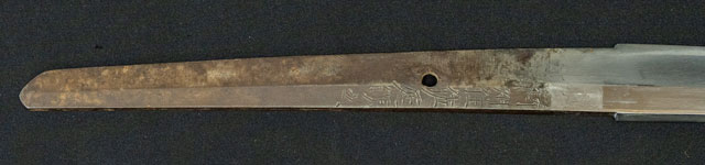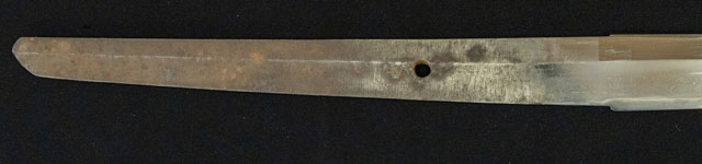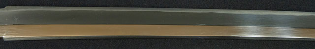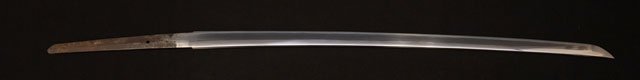 刀長 69.0cm(2尺3寸1分) 反り 1.0cm(3分3厘) 元幅 3.08cm 先幅 2.42cm 元重 7.7mm 先重 5.9mm  刀身重量  裸身 800g 鞘を払って-g  生  目釘穴 1  刃文 直刃 価格