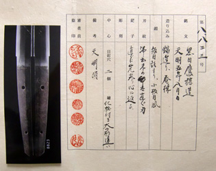 刀  黒田鷹ェ造 天明五年八月日 品番