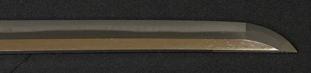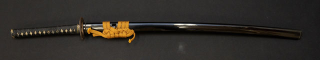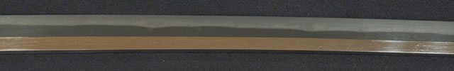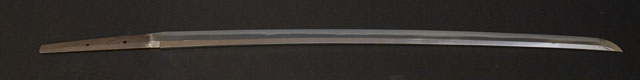 刀長 71.1cm(2尺3寸5分) 反り 0.9cm(3分) 元幅 3.04cm 先幅 2.36cm 元重 8.0mm 先重 6.2mm  刀身重量 裸身 790g 鞘を払って 1,100g  生   目釘穴 2  刃文 互の目丁字  価格