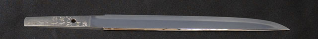 刃紋は得意の直刃を焼き匂出来葉栄んに入り刃冴える。地金小杢肌良く錬る。釆を写したのであろう。 |