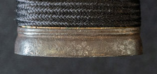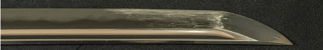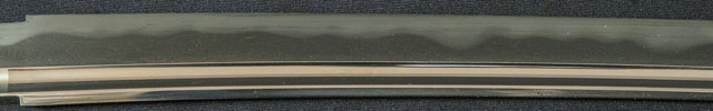 刃紋小沸出来 物打辺りさかんに乱れる。地金小板肌流れごころ地景入る。 |