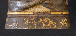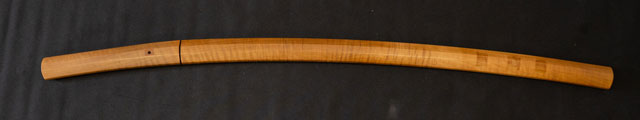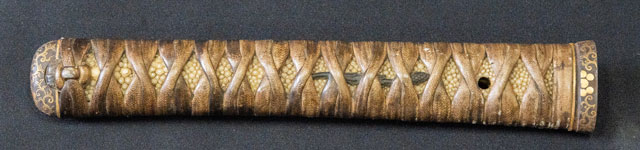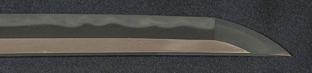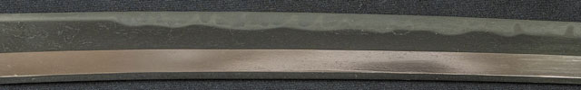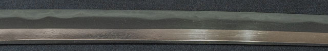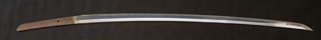 | 刀長 69.8cm(2尺3寸0分) 反り 1.7cm(5分6厘) 元幅 3.02cm 先幅 2.33cm 元重 6.2mm 先重 4.9mm 刀身重量裸身680g 鞘を払って1.020g 茎 生 目釘穴 1 刃文 互ノ目丁字 |
