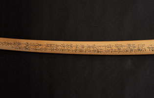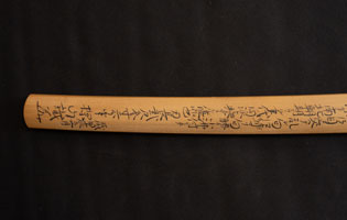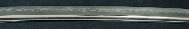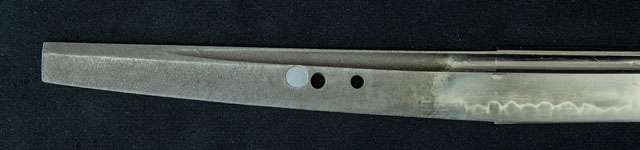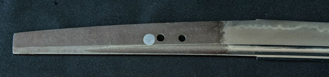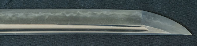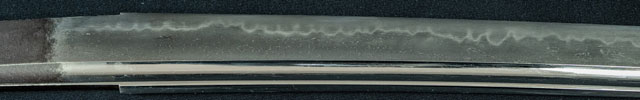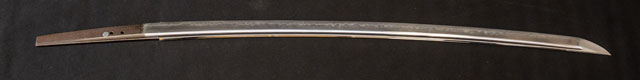 刀長 70.8cm(2尺3寸7分) 反り 1.8cm(6分-厘) 元幅 3.25cm 先幅 2.73cm 元重 6.3mm 先重 5.2mm 刀身重量裸身710g 鞘を払って-g 摺上 目釘穴 3  刃文 丁字 価格