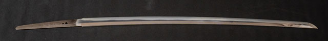 刀長 73.9cm(2尺4寸4分) 反り 1.0cm(3分3厘) 元幅 3.08cm 先幅  2.33cm 元重 6.4mm 先重 5.1mm 刀身重量裸身750g 鞘を払って-g 生 目釘穴 2  刃文 乱刃 価格