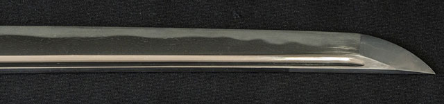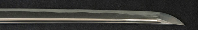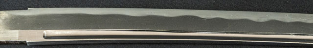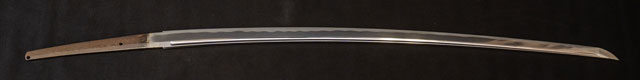 | 刀長 75.5cm(2尺4寸9分) 反り 2.0cm(6分5厘) 元幅 3.16cm 先幅 2.11cm 元重 8.4mm 先重 6.2mm 刀身重量裸身890g 鞘を払って-g 茎 生 目釘穴 1 刃文 乱刃 |